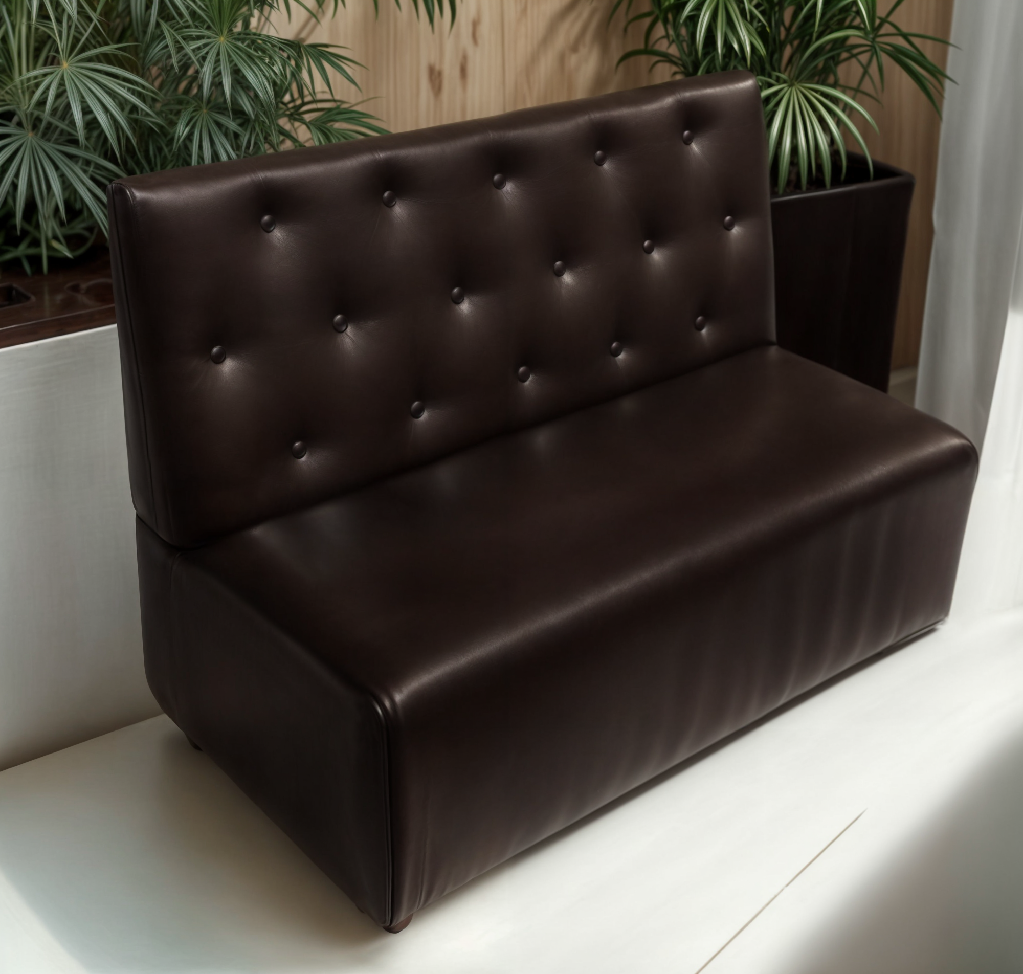 Диван для кафе Tobi Sho Бостон с высокой спинкой и пуговицами 1500x630x850, кожзам Темный шоколад 22311