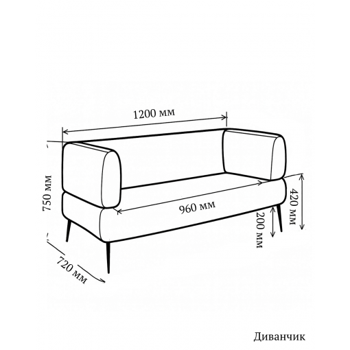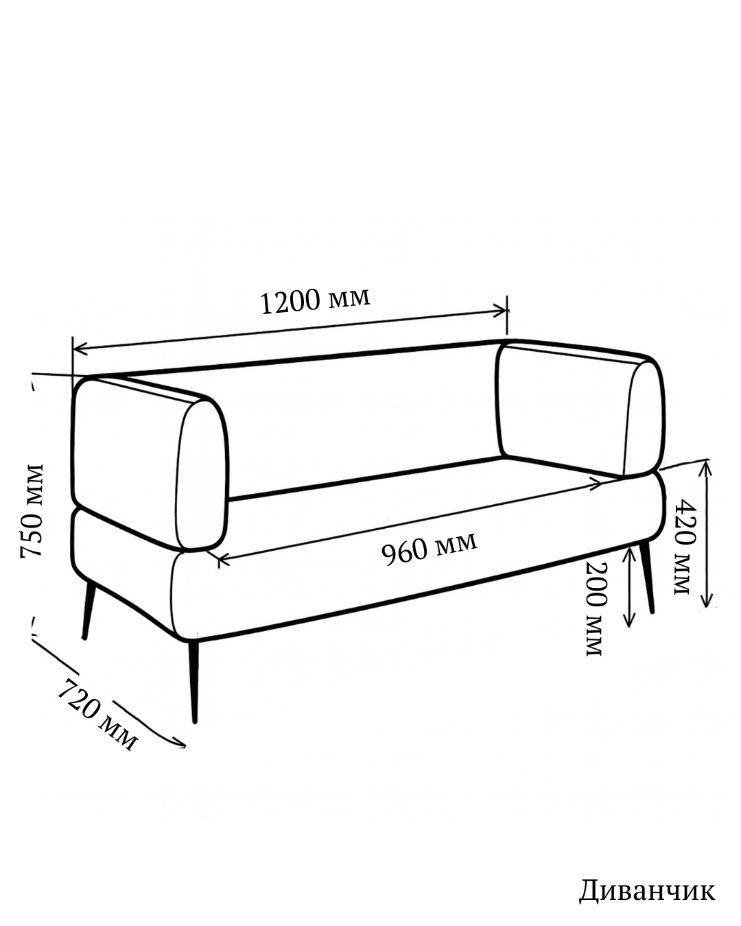 Диван офисный Tobi Sho Бенно-1 с подлокотниками для офиса, гостиной 1200х720х750 велюр Lotus 100/BLACK