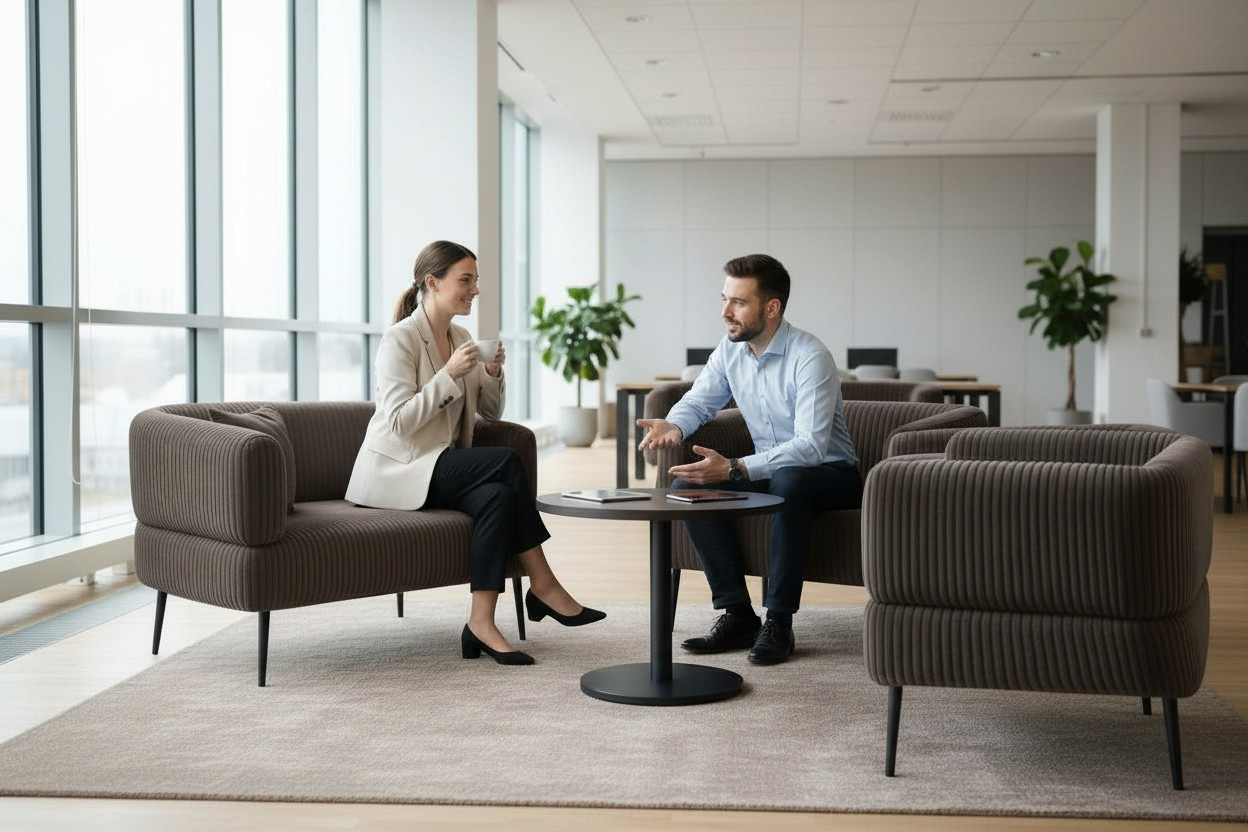 Офисный диван Бенно — удобное и стильное решение для офиса, кабинета, зоны ожидания и даже дома. Благодаря лаконичному дизайну диван легко вписывается в современные и классические интерьеры, придавая пространству аккуратность и ощущение уюта.