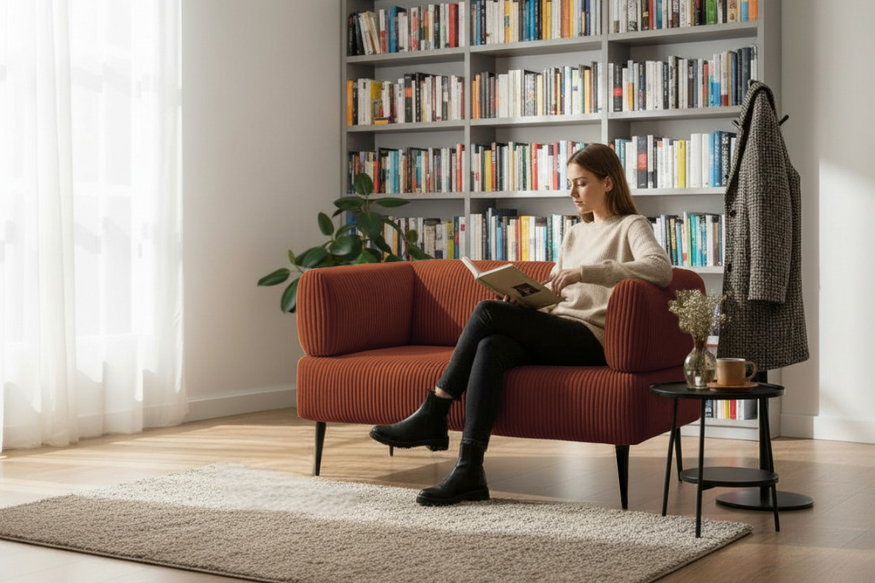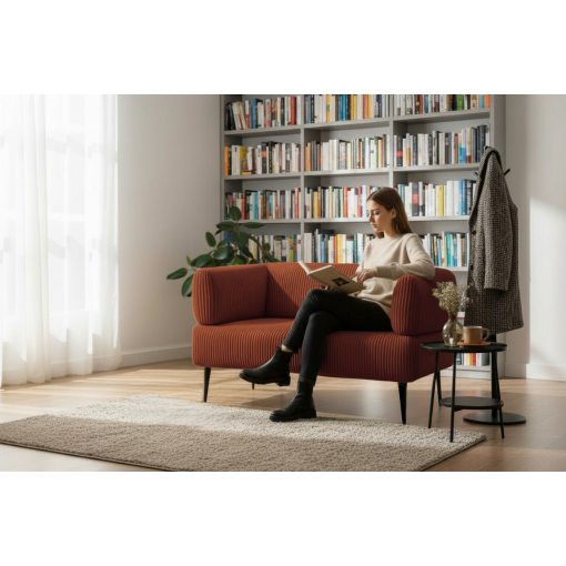 Диван офисный Tobi Sho Бенно-1 с подлокотниками для офиса, гостиной 1200х720х750 велюр вельвет Lotus 54/BRICK