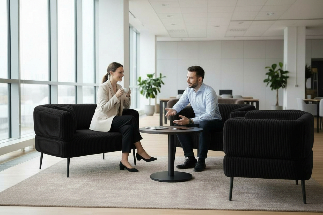 Офисный диван Бенно — удобное и стильное решение для офиса, кабинета, зоны ожидания и даже дома. Благодаря лаконичному дизайну диван легко вписывается в современные и классические интерьеры, придавая пространству аккуратность и ощущение уюта.