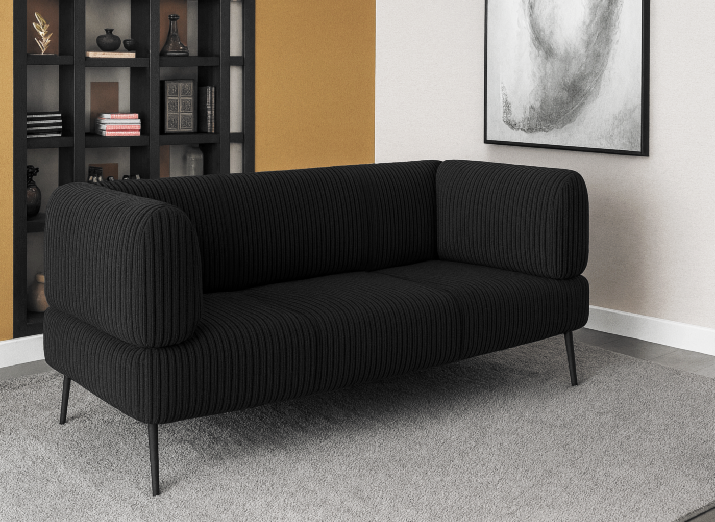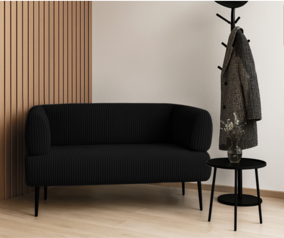 Диван офисный Tobi Sho Бенно-1 с подлокотниками для офиса, гостиной 1500х720х750 велюр вельвет Lotus 100/BLACK