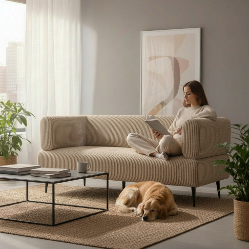 • Мягкие подлокотники делают посадку еще более удобной, а приятная на ощупь велюровая обивка с элементами вельвета и свойством антикоготь сочетает эстетику и практичность.