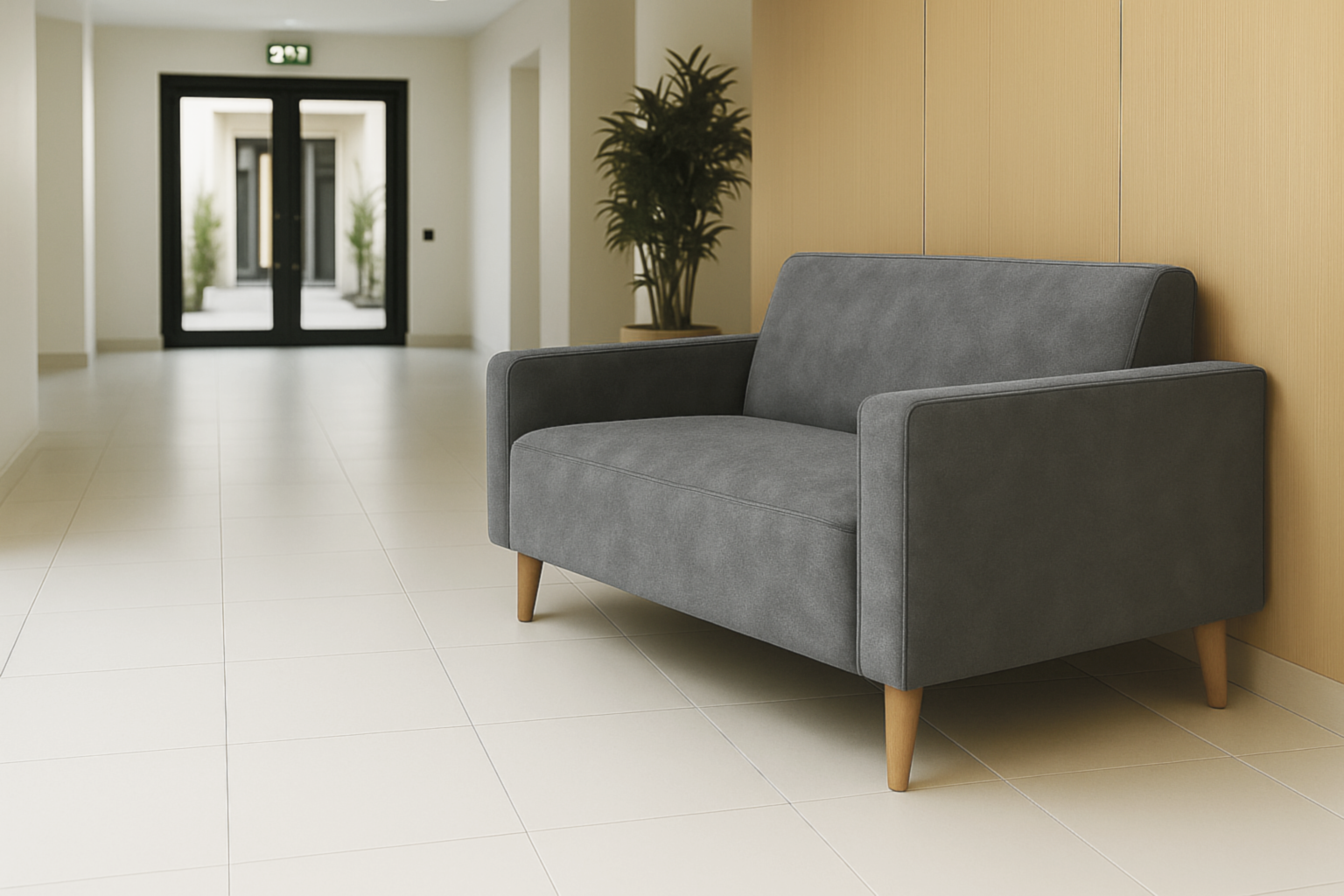 Диван офисный Tobi Sho Селдон с подлокотниками 1460х680х770 мм, велюр Крокус Серый/90