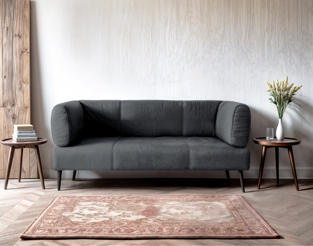 Диван с подлокотниками Tobi Sho Бенно-1 офисный с конусной ногой 1500х720х750 велюр Emilia 95 DARK GREY