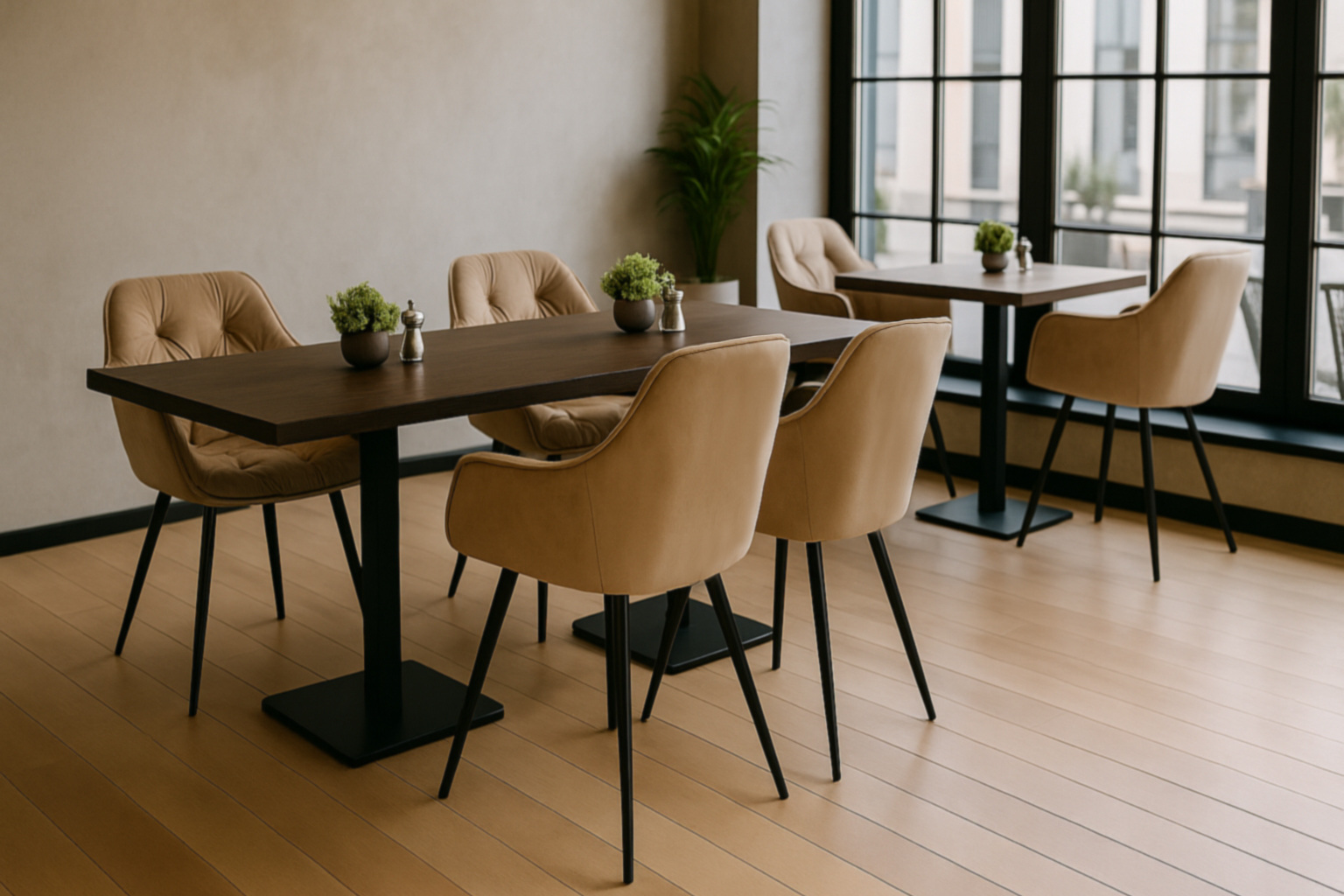 • Комплект — удобное решение для обустройства dining-зоны или коммерческого пространства