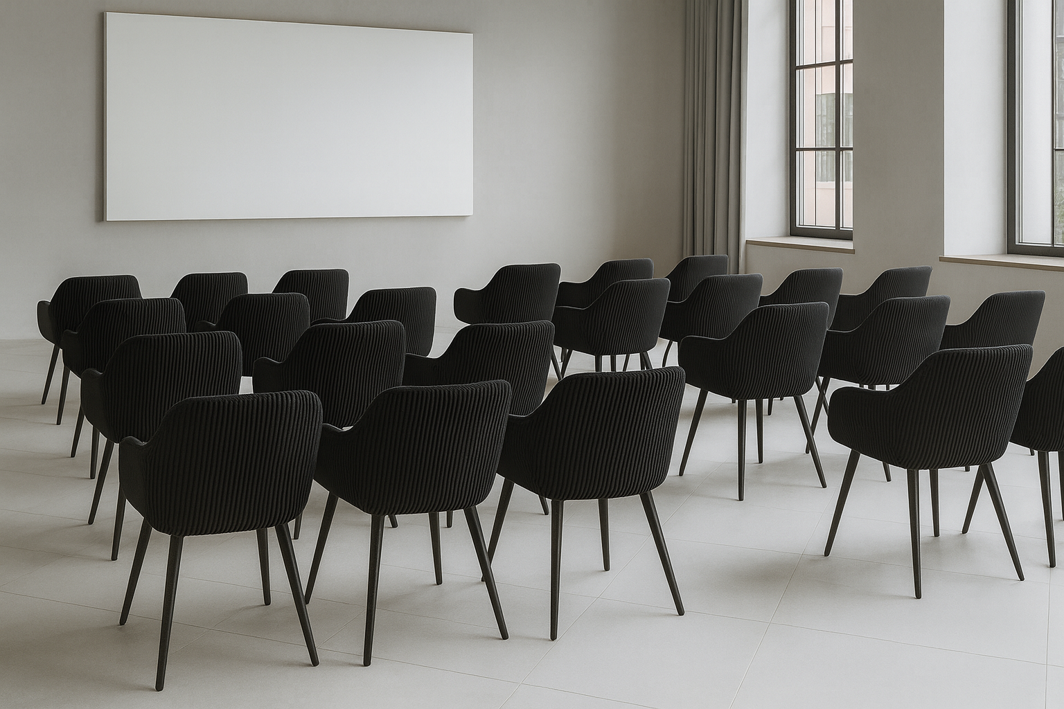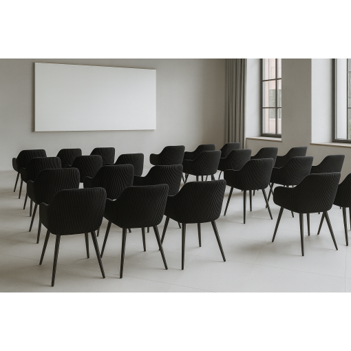Широкое сиденье, подлокотники и эргономичная форма обеспечивают комфорт даже при длительном сидении, а металлические ножки гарантируют стабильность и долговечность.