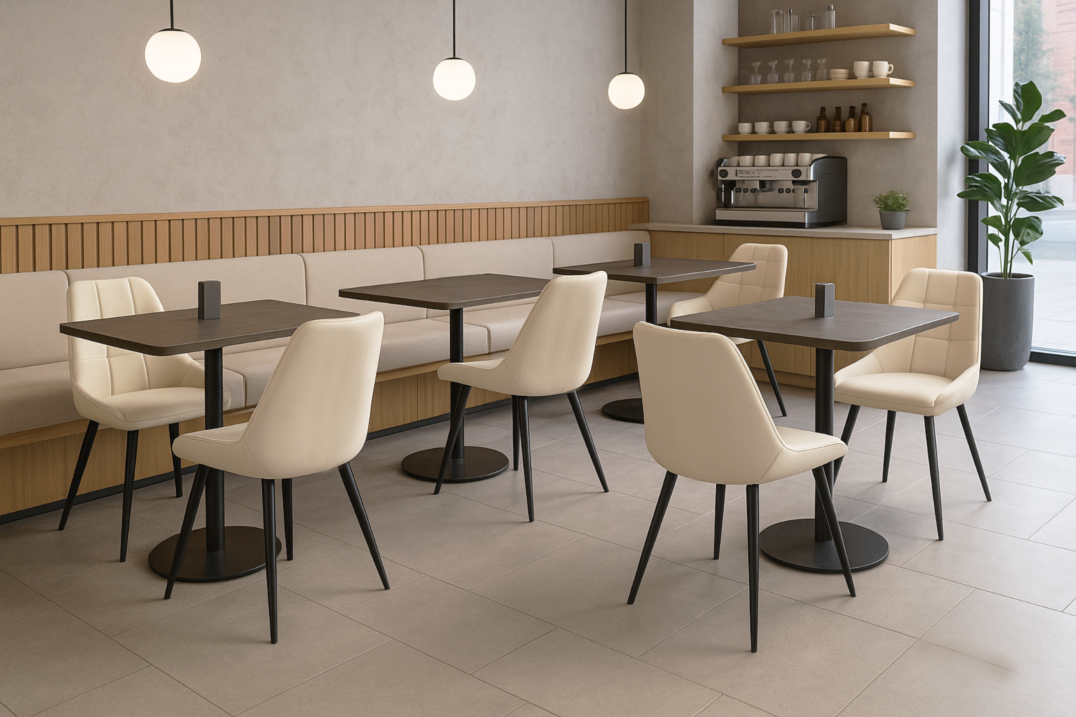 Комплект стульев обеденных Милано М-75 (4 шт.), кожзам Айвори/черный, для кухни, столовой, кафе, 890×510×605 мм