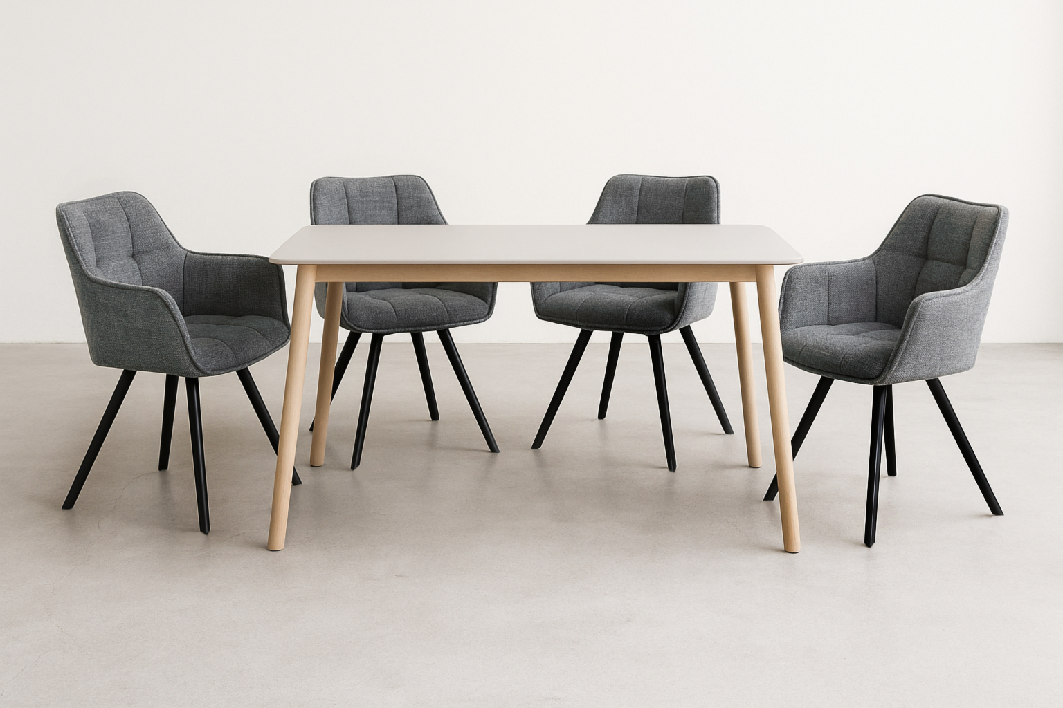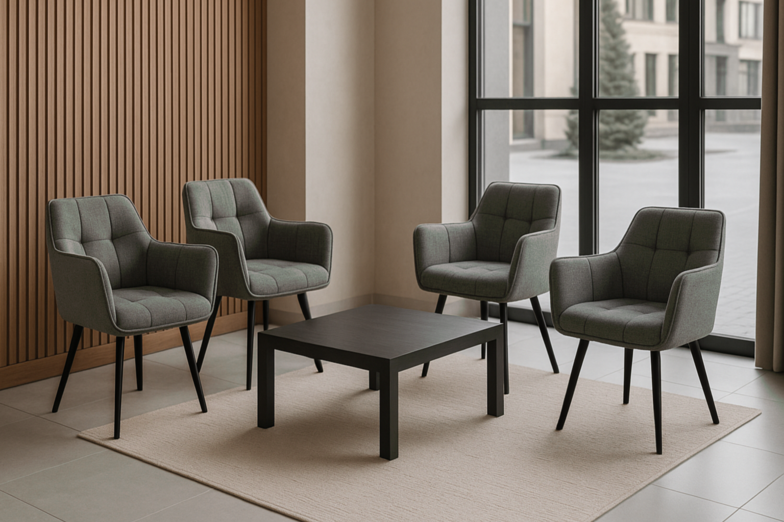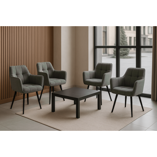 Широкое сиденье и удобные подлокотники гарантируют комфорт даже при длительном использовании. Металлическая окрашенная основа обеспечивает надежность и устойчивость конструкции, создавая стильный контраст с обивкой. Комплект «Осло» идеально подходит для обеденных зон, кухни, гостиной или рабочего кабинета.