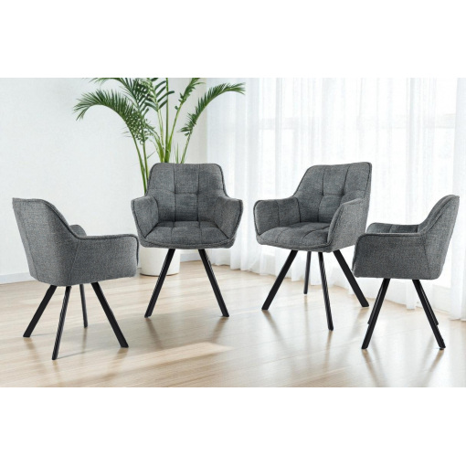 Комплект стульев обеденных Осло М-235 (4 шт.) с подлокотниками, для столовой, кухни, ткань фактурная Графит/черный, 850х600х610 мм