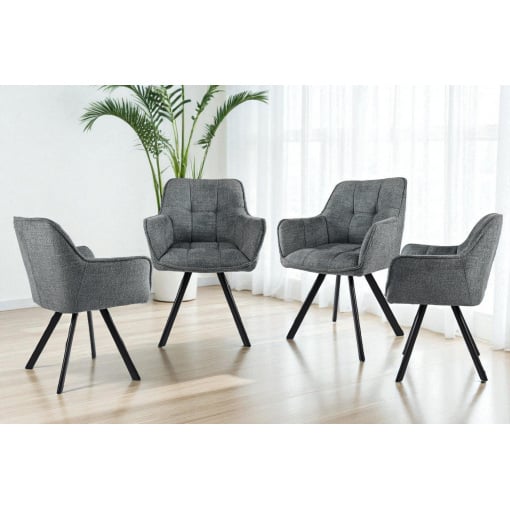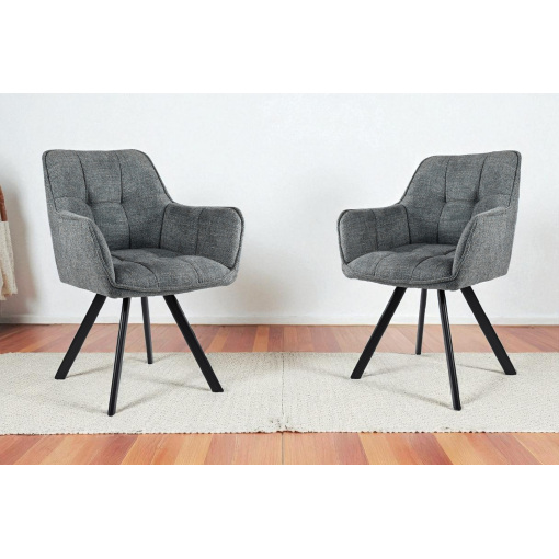 Комплект стульев обеденных Осло М-235 (2 шт.) с подлокотниками, для столовой, кухни, ткань фактурная Графит/черный, 850х600х610 мм