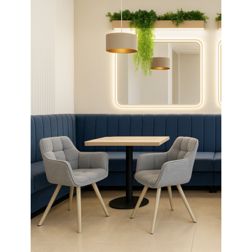 Широкое сиденье и удобные подлокотники гарантируют комфорт даже при длительном использовании. Металлическая окрашенная основа обеспечивает надежность и устойчивость конструкции, создавая стильный контраст с обивкой. Комплект «Осло» идеально подходит для обеденных зон, кухни, гостиной или рабочего кабинета.
