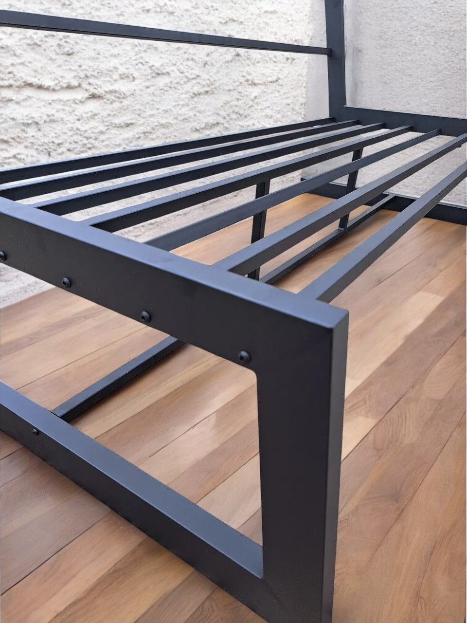 Каркас изготовлен из прочного цельнотянутого металлического профиля 50×30×2 мм и имеет антикоррозийное порошковое покрытие с запеканием в камере. Конструкция выдерживает до 160 кг на одно посадочное место.