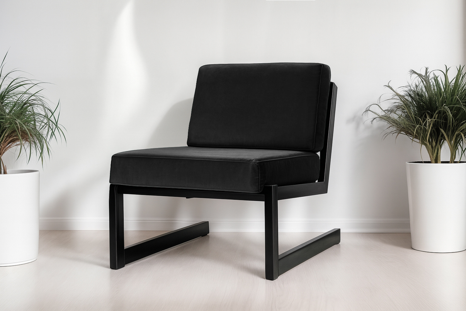 Стильное акцентное кресло с металлическим каркасом и мягкими подушками - идеальный выбор для тех, кто ценит минимализм, функциональность и комфорт.