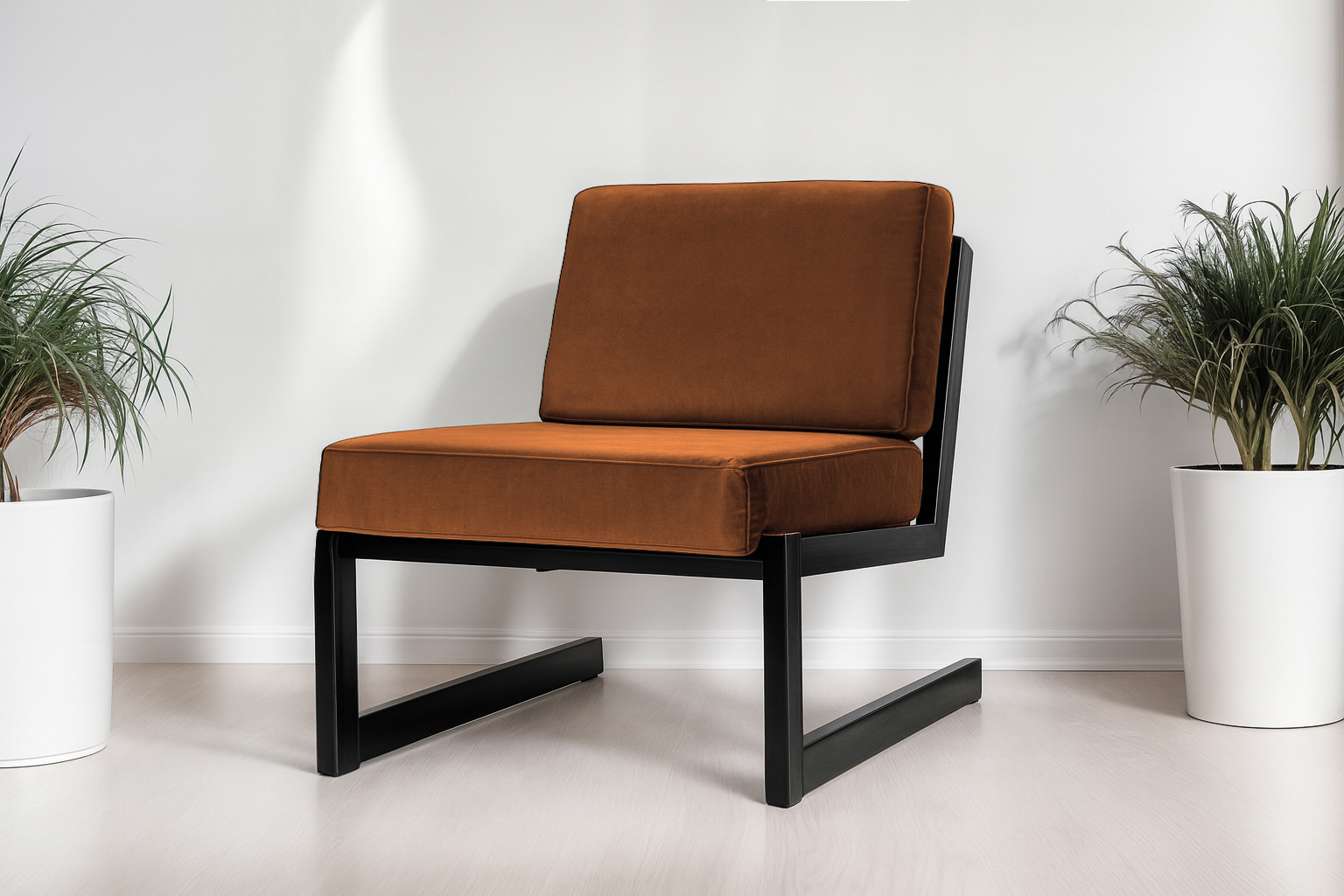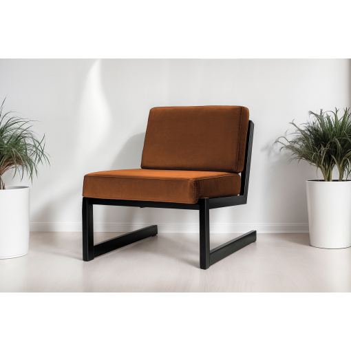 Стильное акцентное кресло с металлическим каркасом и мягкими подушками - идеальный выбор для тех, кто ценит минимализм, функциональность и комфорт.