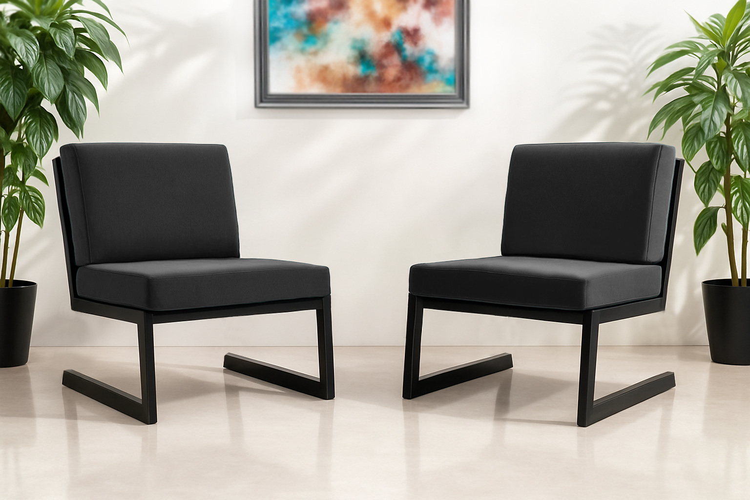 Стильное акцентное кресло с металлическим каркасом и мягкими подушками - идеальный выбор для тех, кто ценит минимализм, функциональность и комфорт.