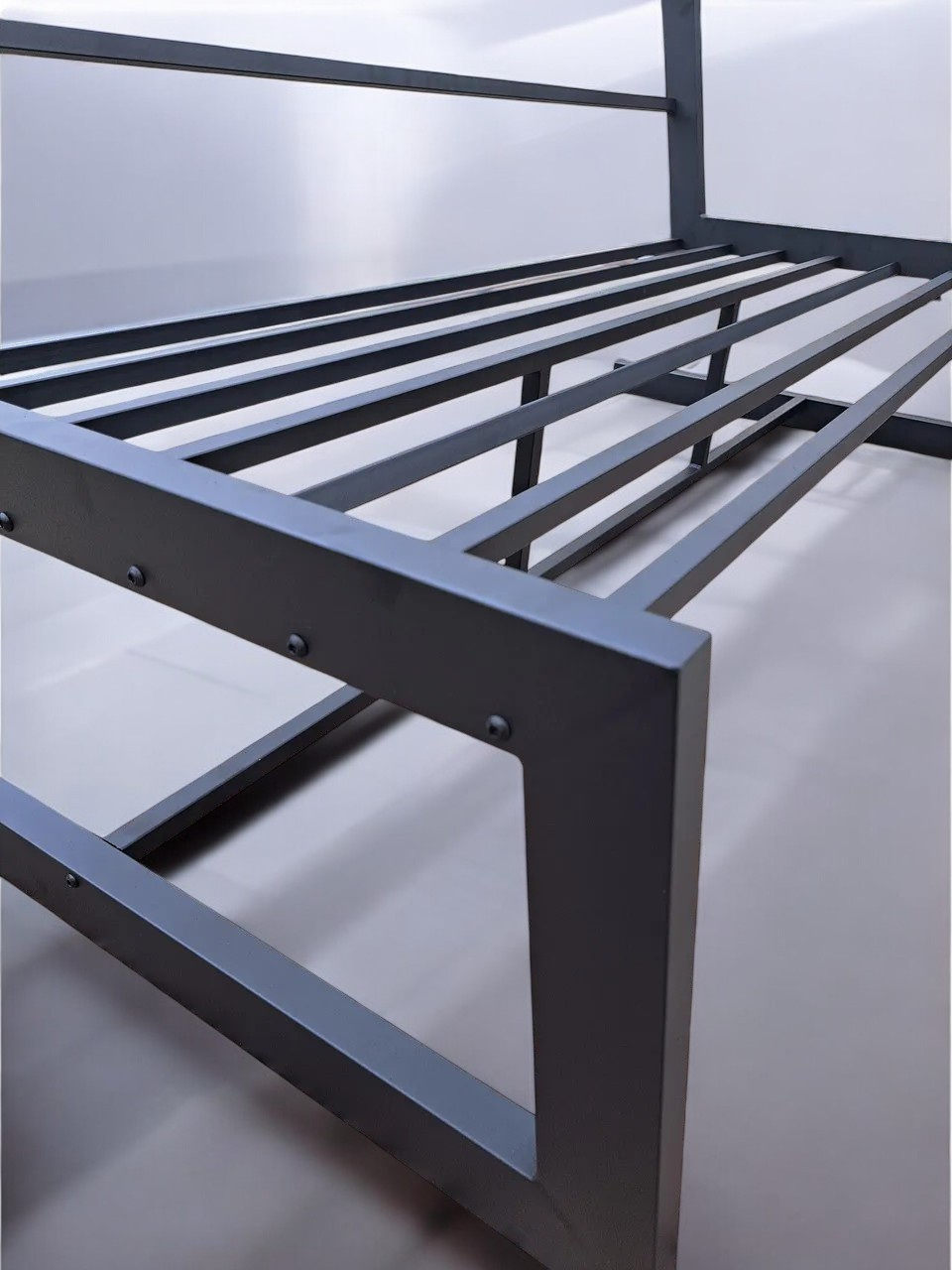 Каркас изготовлен из прочного цельнотянутого металлического профиля 50×30×2 мм и имеет антикоррозийное порошковое покрытие с запеканием в камере. Конструкция выдерживает до 160 кг на одно посадочное место.