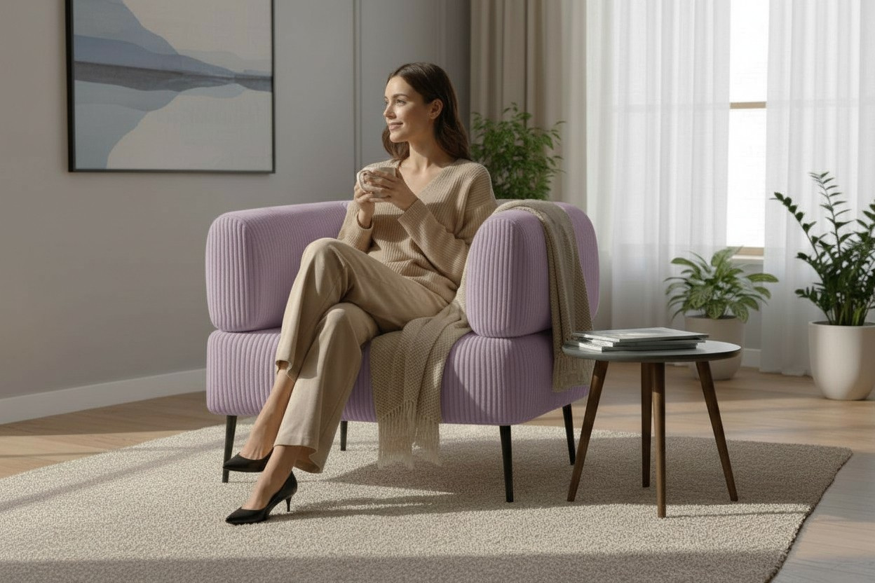 Кресло офисное Tobi Sho Бенно-1 с подлокотниками для офиса, гостиной 1000х720х750 велюр вельвет Lotus 65/LILAC