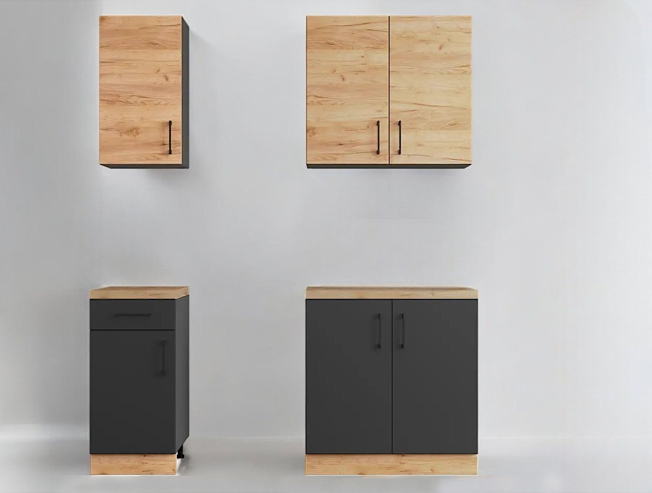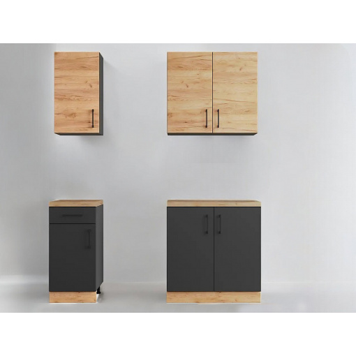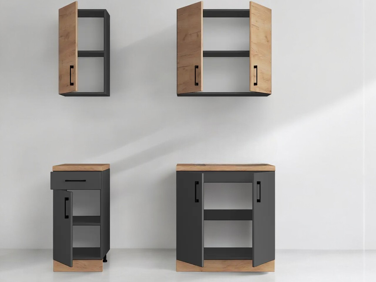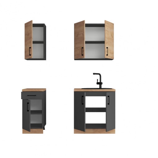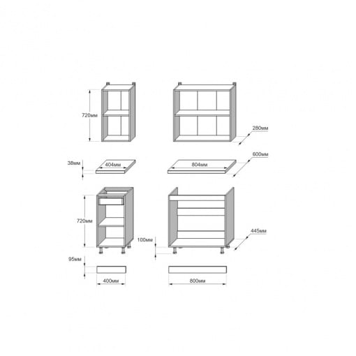 Модули изготовлены из высококачественной ламинированной ДСП толщиной 16 мм с прочной кромкой 0,5 мм на корпусе и 1 мм на фасадах. Ламинированная поверхность устойчива к повреждениям, воде и паре, поэтому прослужит много лет.