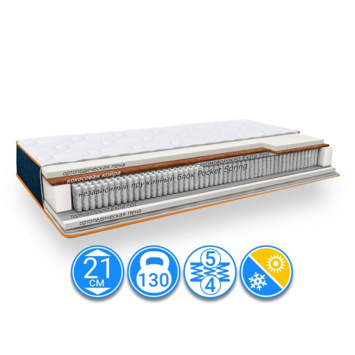 За счет применения с одной стороны слоя латексированной кокосовой койры данная модель матраса обладает эффектом 2в1.