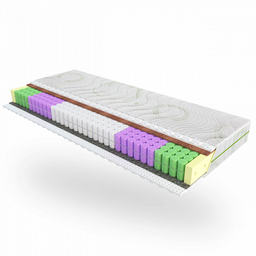 Пружинный блок оснащен 5 зонами жесткости: зоной головы, зоной плеч, зоной поясницы, зоной коленей и голеней, зоной ступней.