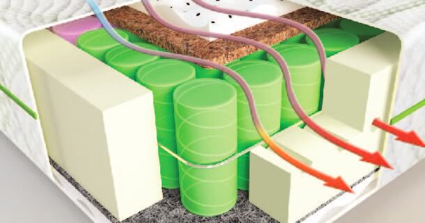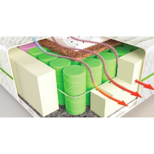 Воздух равномерно распределяется в матрасе, обеспечивая при этом отличную вентиляцию внутренних слоев, и придает изделию отличный массажный эффект.