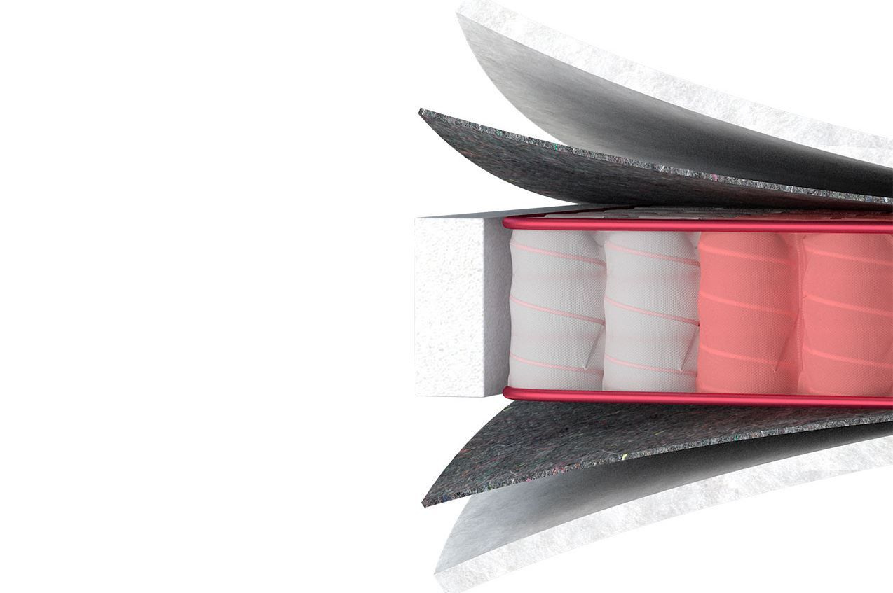 Каждая пружина находится в отдельном тканевом чехле. Все 5 зон имеют разную жесткость и отвечают за определенную часть тела, создавая при этом все условия для правильного анатомического расположения спящего человека.