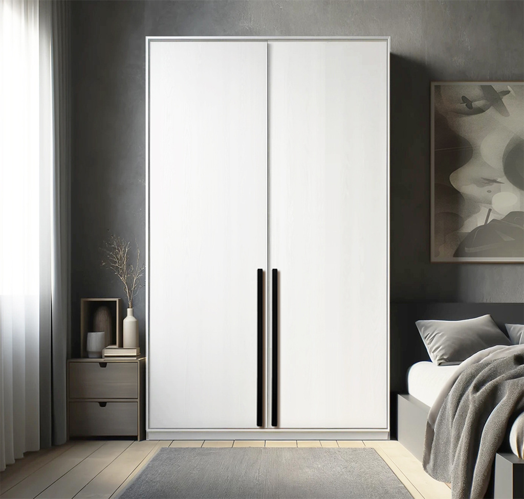 Шкаф оснащен элегантными профильными ручками черного матового цвета от производителя Virno Lines. Их стильный, изысканный дизайн подарит эстетическое наслаждение и наполнит Ваш интерьер легкостью и изяществом.