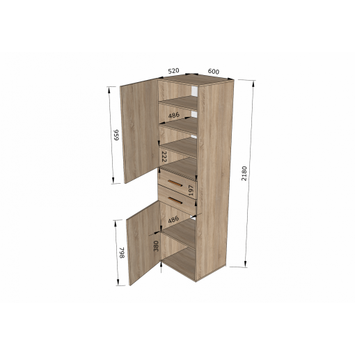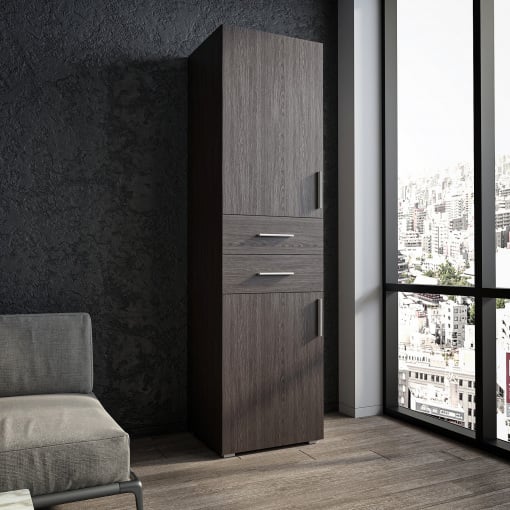 Шкаф-пенал Tobi Sho ST-0014 с полками и выдвижными ящиками, 600х2180х520 мм, Венге