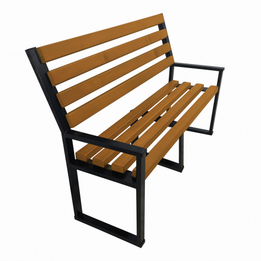 Основа скамейки - прочный металлический профиль толщиной 1,8-2 мм. Размер профиля 50х25 мм. Металл покрыт черной молотковой краской в 2-3 слоя.