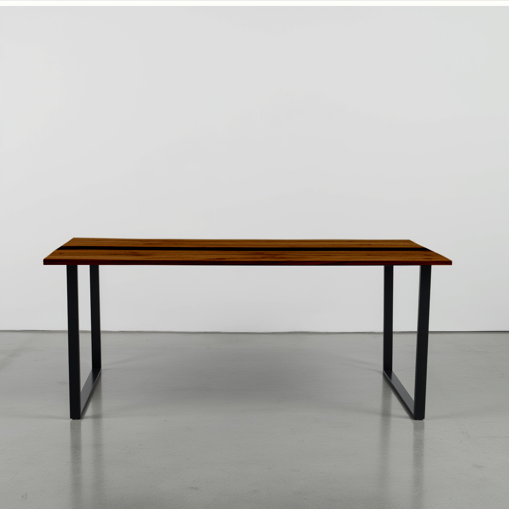 Столешница имеет стильную черную вставку из ДСП, которая придает столу выразительного акцента и делает его дизайн еще более эффектным.