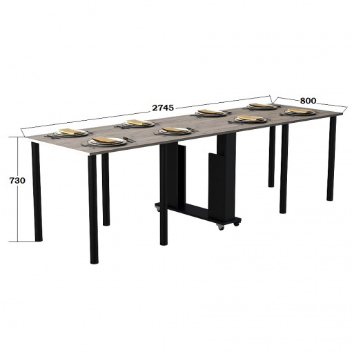 • полностью разложенный: 800×2750×730 мм — большой обеденный стол для праздников, гостей и больших компаний.