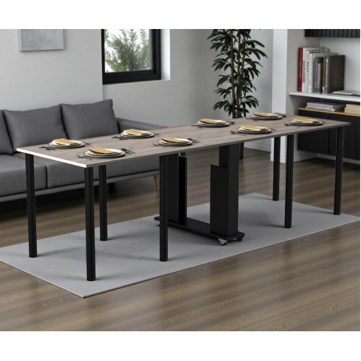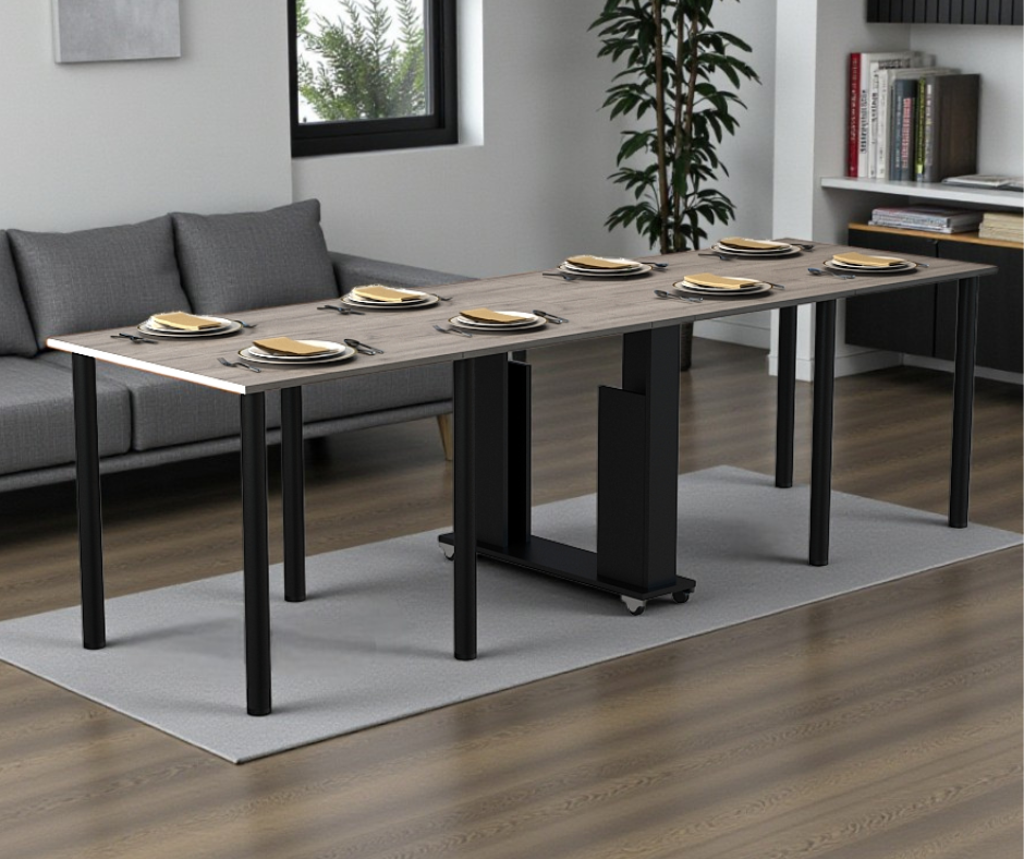 Раскладной стол-книжка «Диалог» на колесах — универсальное решение для дома и небольших пространств. Это практичный и чрезвычайно функциональный вариант для кухни, гостиной, офиса или студии. Благодаря роликовой системе и металлическим опорам он легко перемещается и быстро трансформируется в нужный формат: от компактного столика до большого обеденного пространства на 10-12 человек.