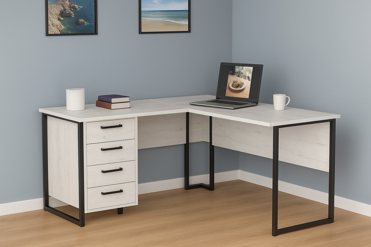 Стол угловой офисный Tobi Sho LOFT Iceberg СУЛА/2-1 с 4 ящиками столешница 18 мм, 1600х1400х750 Дуб крафт белый