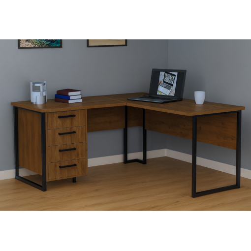 Стол угловой офисный Tobi Sho LOFT Volcano СУЛВ/2-1 с 4 ящиками столешница 18 мм, 1400х1400х750 Фаервуд