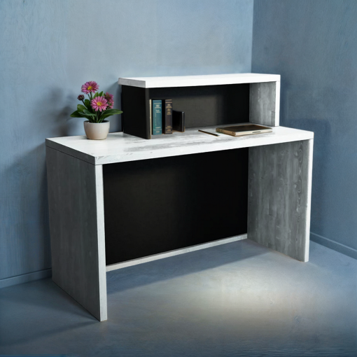 Ресепшн оснащен надстройкой, которая обеспечивает удобное хранение бумаг и канцелярии, помогая поддерживать порядок в рабочем пространстве.
