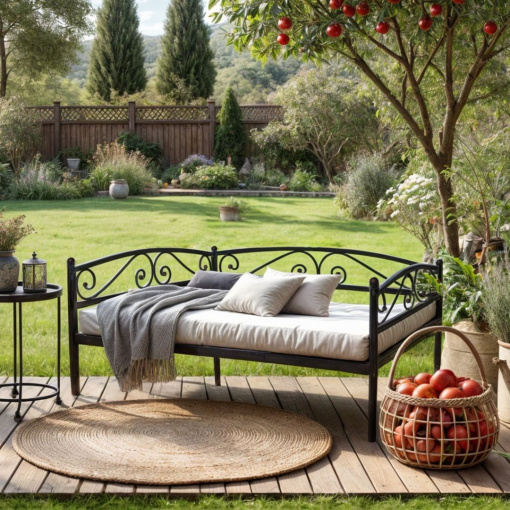 Тахта металлическая Tobi Sho CAROLA LUX для террасы, сада 200x80 Черная