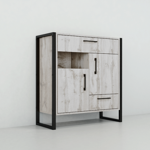 Тумбы для прихожей в стиле лофт — это практичное и стильное решение для обустройства коридора в квартире, доме или офисе. Сочетание ЛДСП с натуральной древесной текстурой и черного металлического каркаса создает современный индустриальный вид и делает тумбу в прихожую выразительным элементом интерьера.