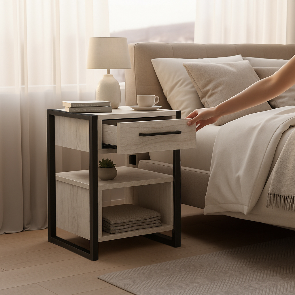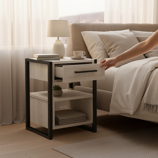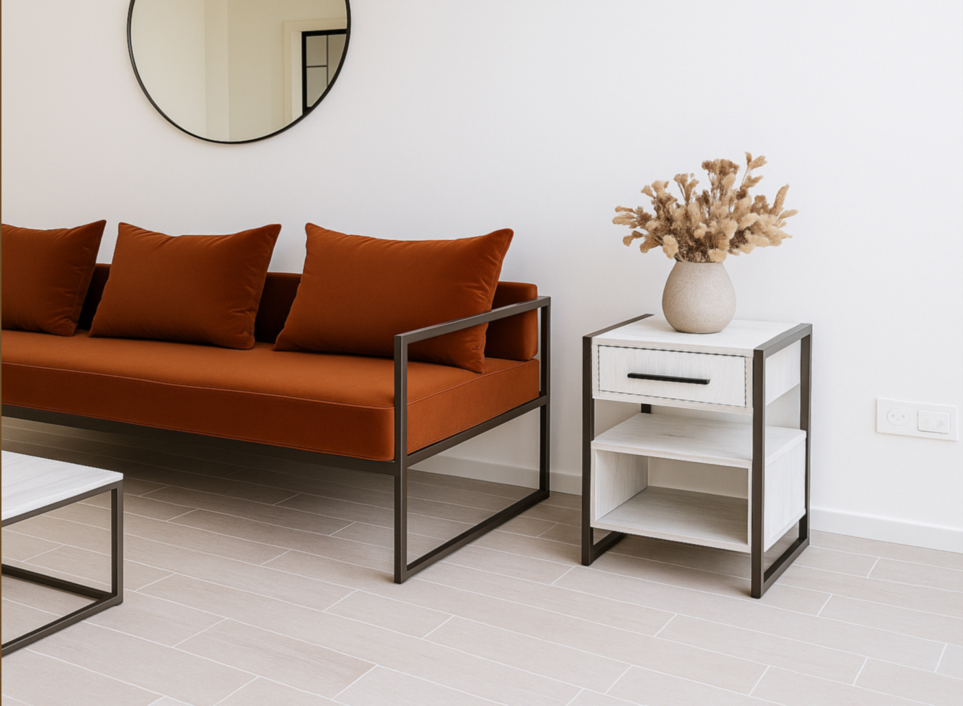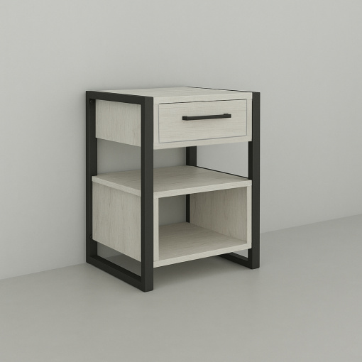 Тумбы для прихожей в стиле лофт — это практичное и стильное решение для обустройства коридора в квартире, доме или офисе. Сочетание ЛДСП с натуральной древесной текстурой и черного металлического каркаса создает современный индустриальный вид и делает тумбу в прихожую выразительным элементом интерьера.
