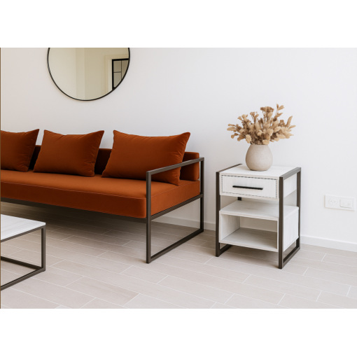 Функциональная конструкция позволяет удобно хранить аксессуары, поддерживая порядок в ежедневном использовании. Тумба для прихожей в стиле лофт подходит как для небольших, так и для просторных коридоров и легко сочетается с другой мебелью для прихожей.