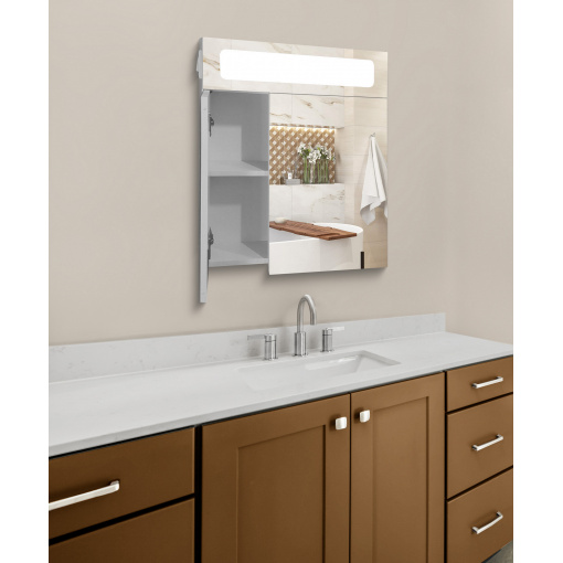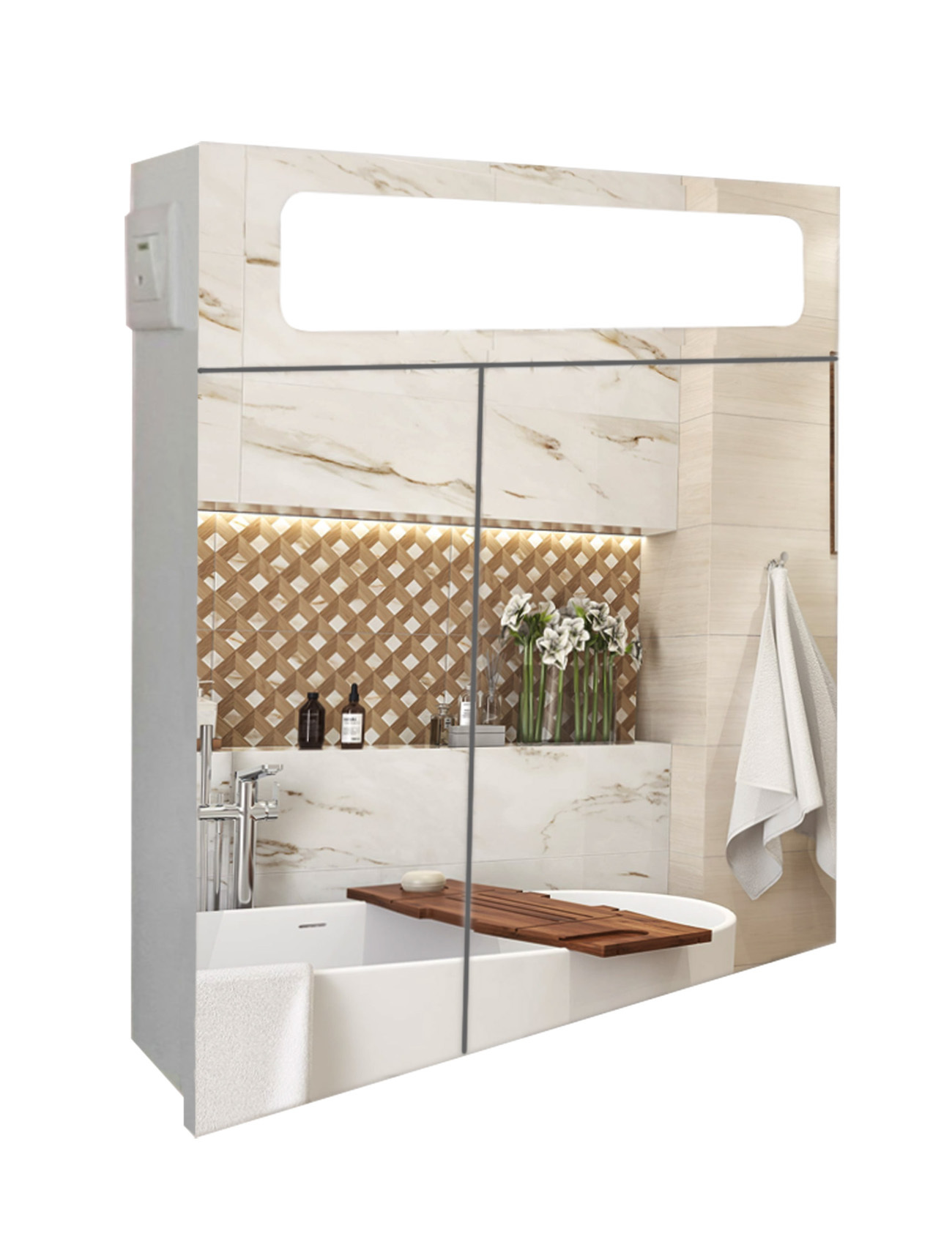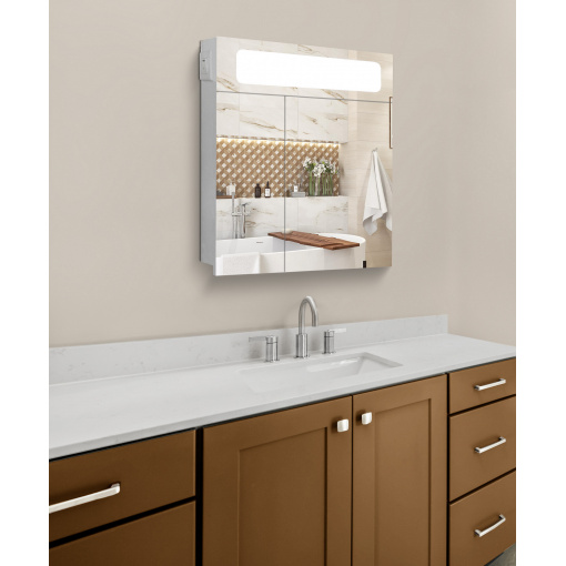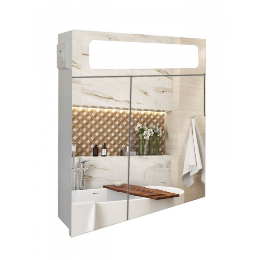 Зеркальный панорамный шкафчик в ванную комнату с подсветкой TR24-60 600х700х120 мм Белый