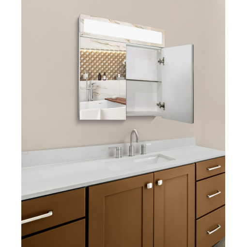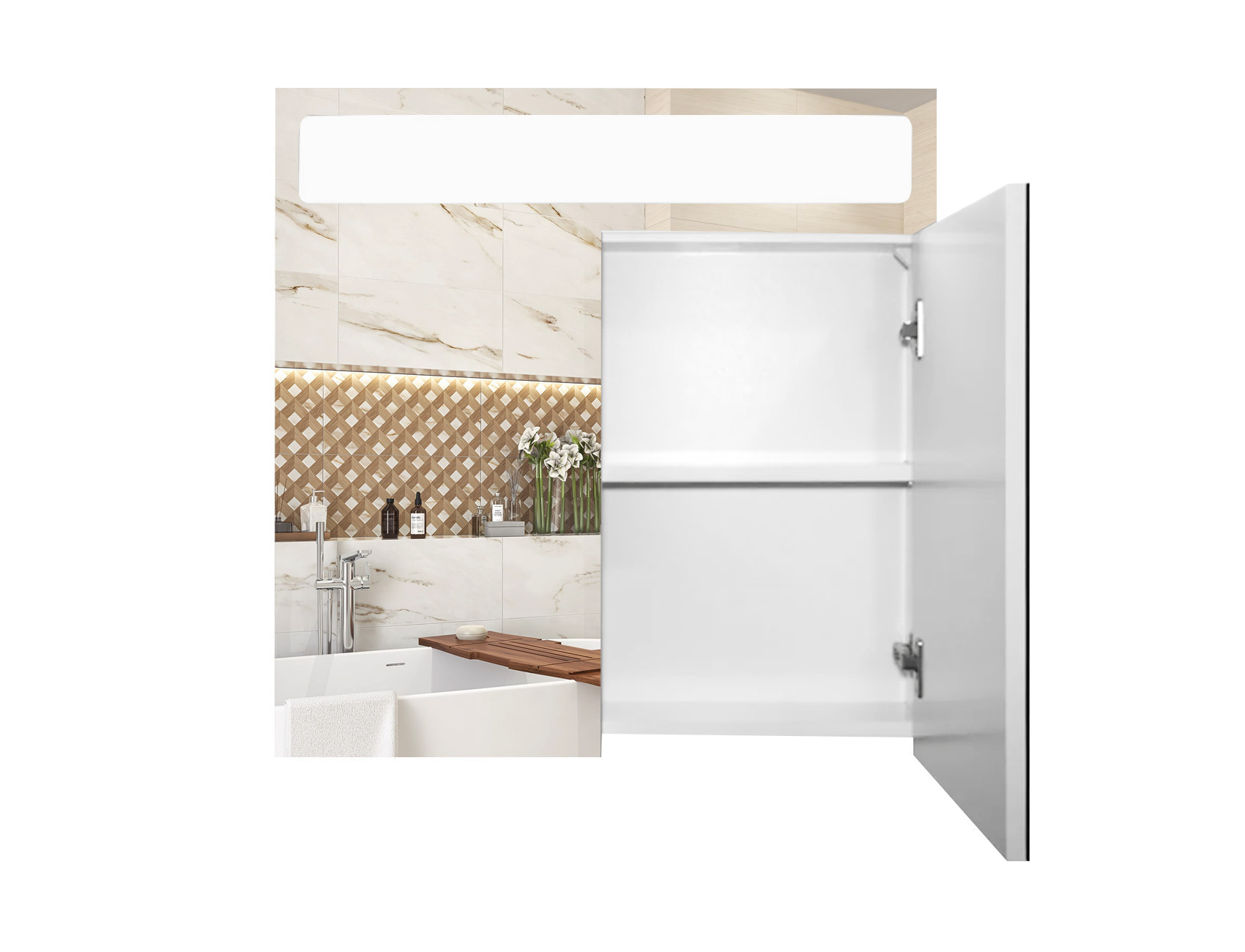 Зеркальный панорамный шкафчик в ванную комнату с подсветкой TR25-70 700х700х120 мм