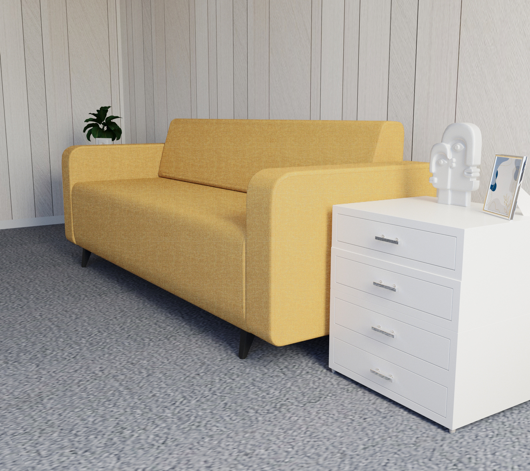 Офісний диван - це відмінне рішення для створення комфортної та стильної атмосфери в офісі, приймальні, конференц-залі та інших комерційних приміщеннях. Представлена модель дивана має простий та елегантний дизайн, який чудово поєднується з різними інтер`єрами. Виріб дуже компактний і не займає багато площі.