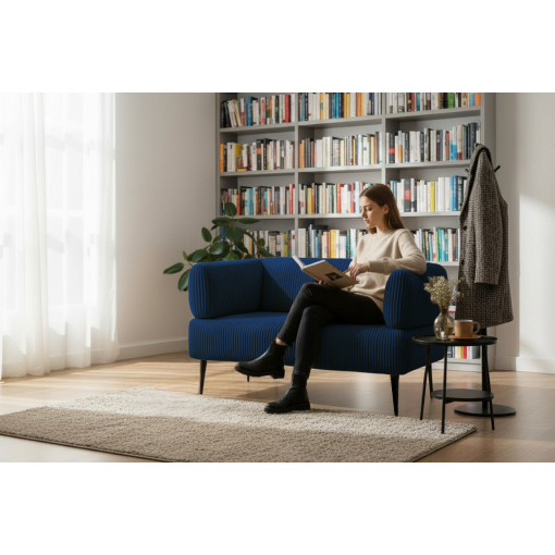 Диван офісний Tobi Sho Бенно-1 з підлокітниками для офісу, вітальні 1400х720х750 велюр вельвет Lotus 88/DK BLUE