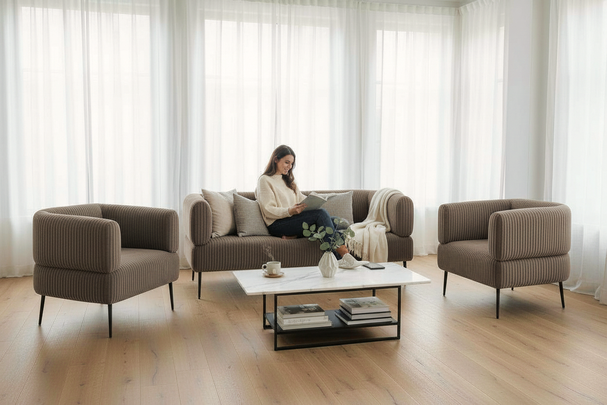 Велюр має особливість змінювати відтінок залежно від напряму ворсу, освітлення та кута огляду — це природна властивість тканини, а не дефект.