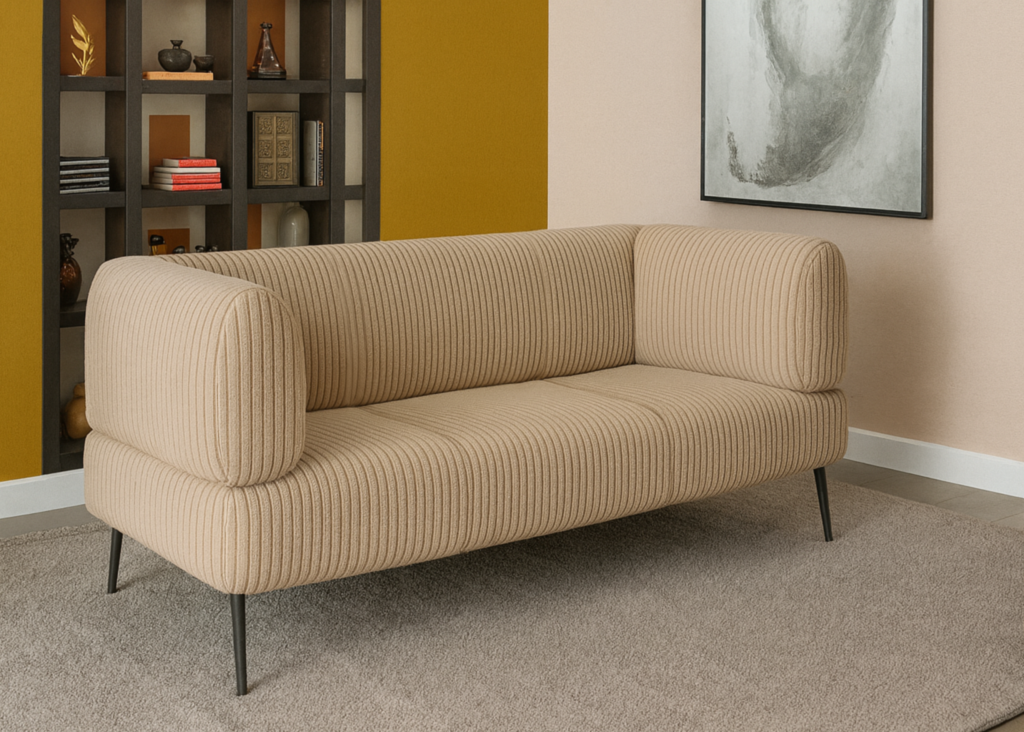 Диван офісний Tobi Sho Бенно-1 з підлокітниками для офісу, вітальні 1500х720х750 велюр вельвет Lotus 09/DK BEIGE