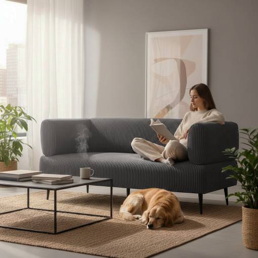 • М’які підлокітники роблять посадку ще зручнішою, а приємна на дотик велюрова оббивка з елементами вельвету та властивістю антикіготь поєднує естетику і практичність.