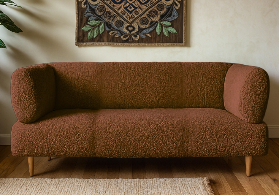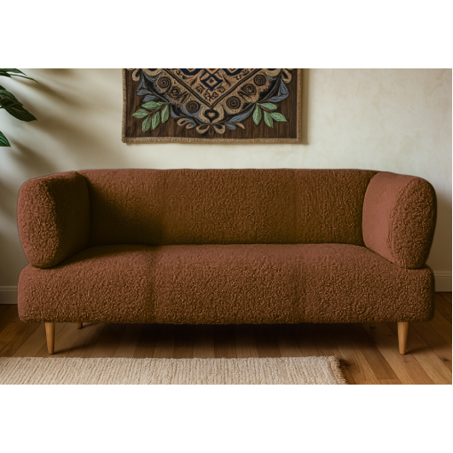 Оббивка виготовлена з м'якого та приємного на дотик букле Альпака зі зносостійкістю 50 000 циклів. Тканина вирізняється практичністю, довговічністю та екологічністю. Її натуральний склад не провокує алергічних реакцій, що робить цей матеріал ідеальним вибором для людей із чутливою шкірою.
