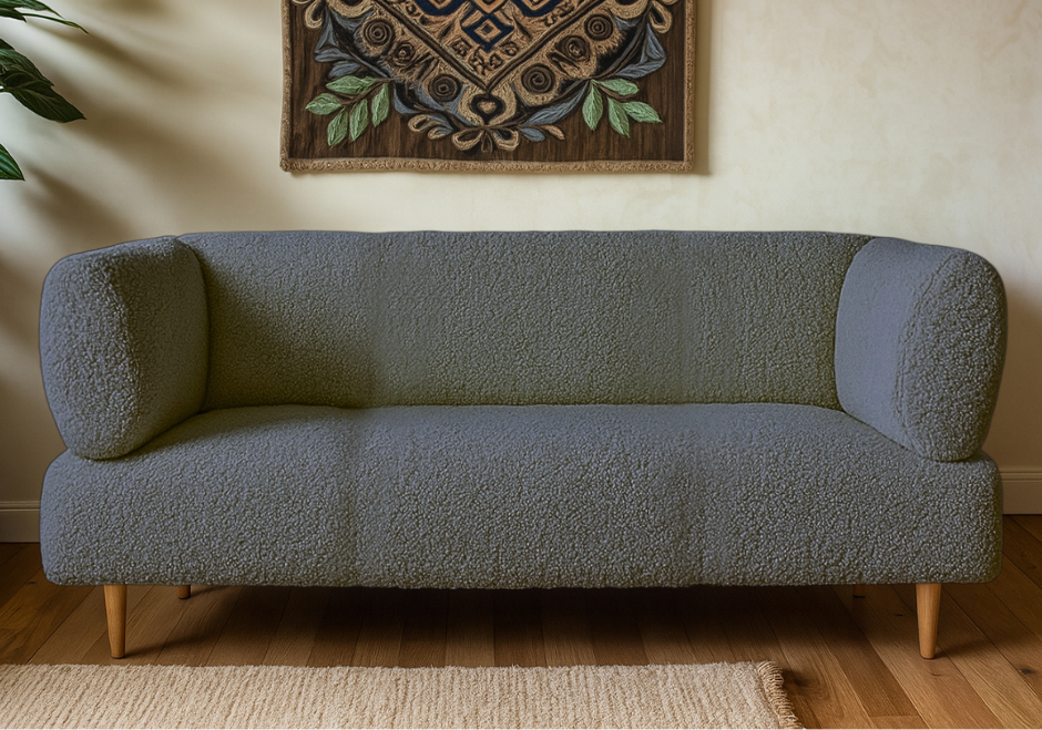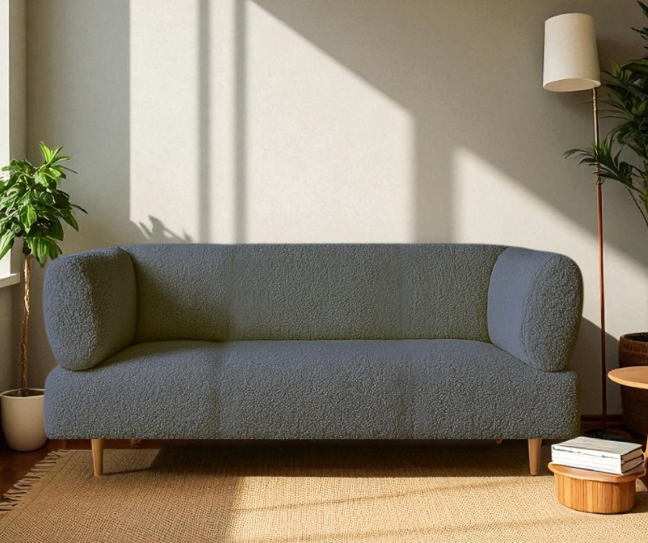 Оббивка виготовлена з м'якого та приємного на дотик букле Альпака зі зносостійкістю 50 000 циклів. Тканина вирізняється практичністю, довговічністю та екологічністю. Її натуральний склад не провокує алергічних реакцій, що робить цей матеріал ідеальним вибором для людей із чутливою шкірою.