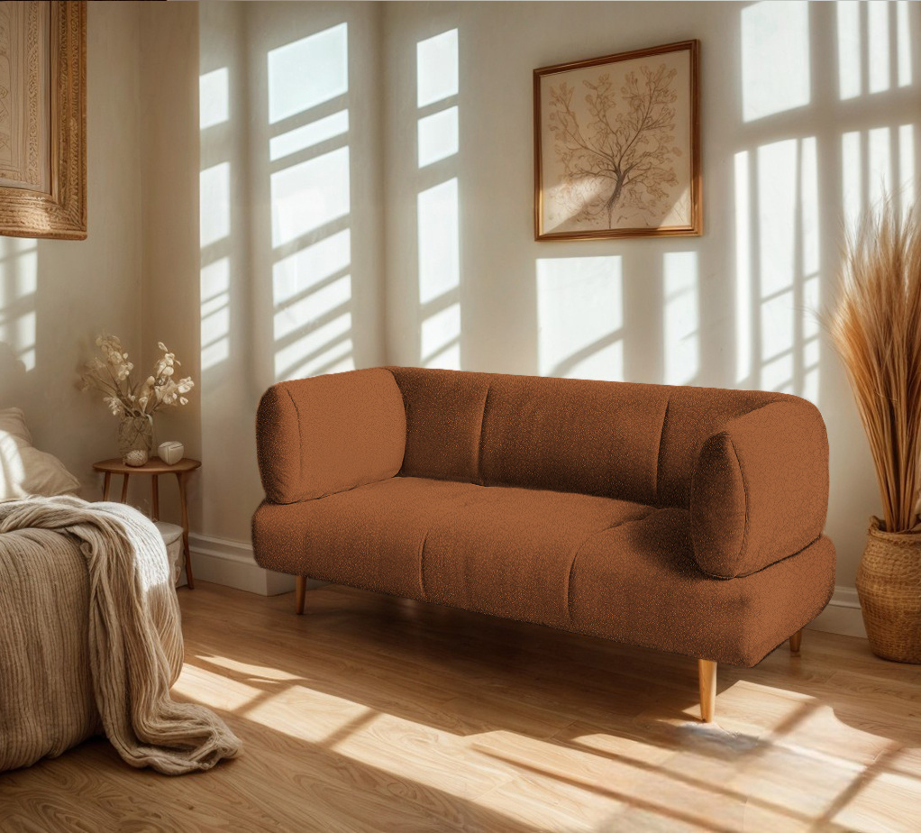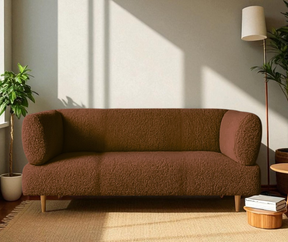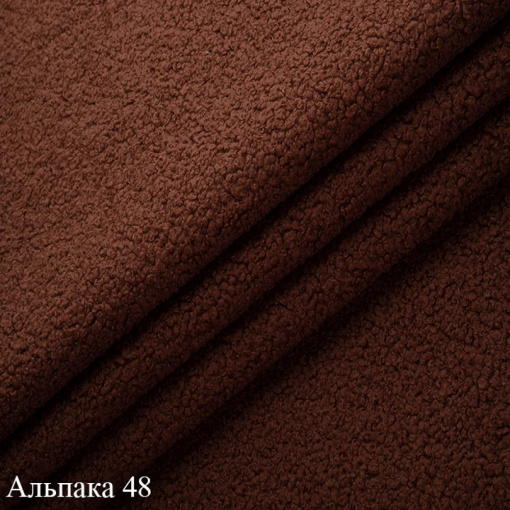 Оббивка виготовлена з м'якого та приємного на дотик букле Альпака зі зносостійкістю 50 000 циклів. Тканина вирізняється практичністю, довговічністю та екологічністю. Її натуральний склад не провокує алергічних реакцій, що робить цей матеріал ідеальним вибором для людей із чутливою шкірою.